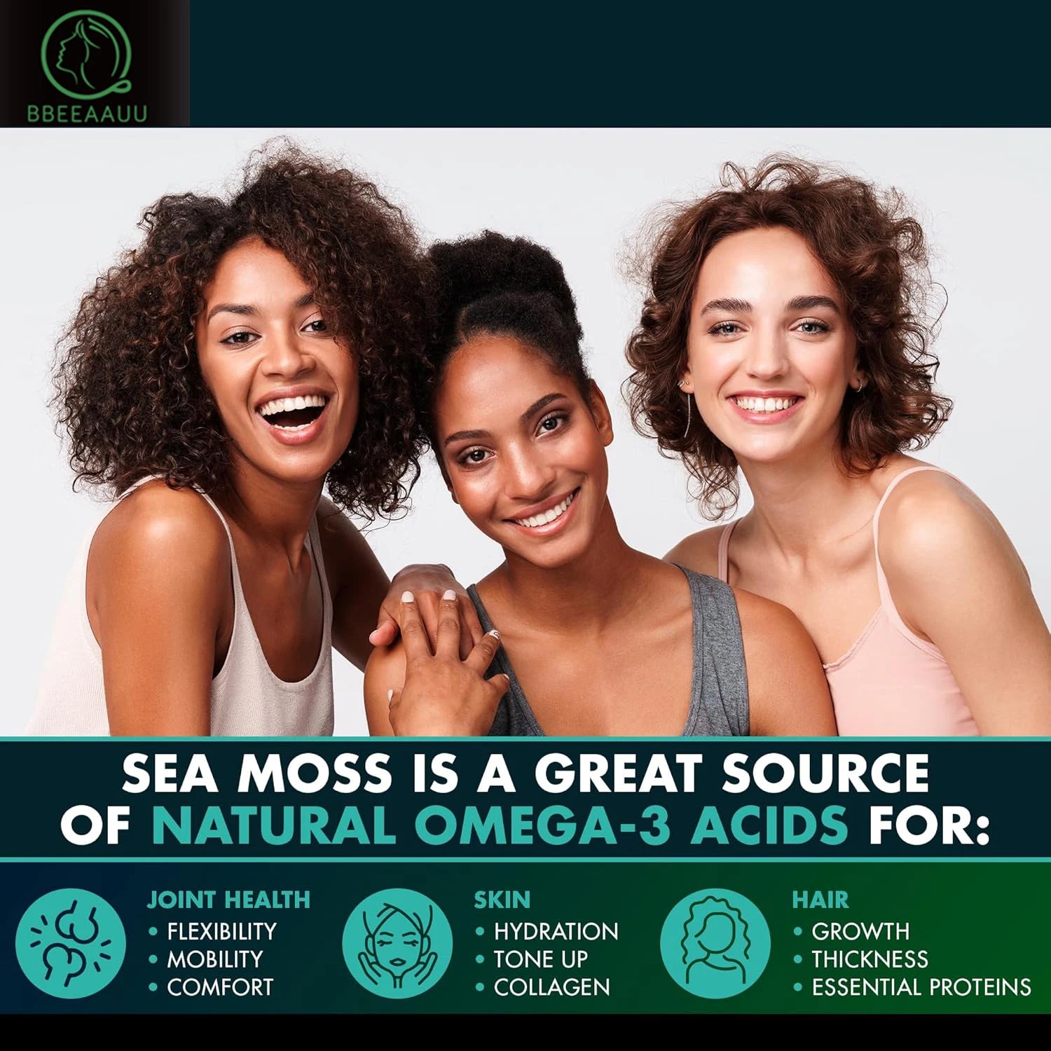 Beauty and Aging: Our genuine seaweed supplements are beneficial for the skin, hair, nails, muscles, joints, and knees as they enhance tissue, promote collagen production, and provide antioxidants to prevent free radicals and maintain aging.